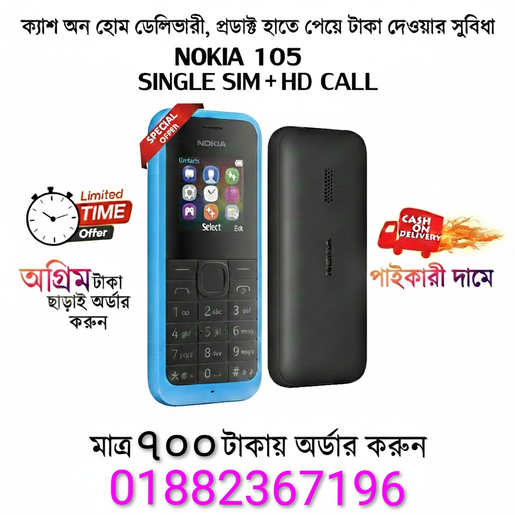 - Nokia 105 ১টি সিম কার্ড সাপোর্টেড।